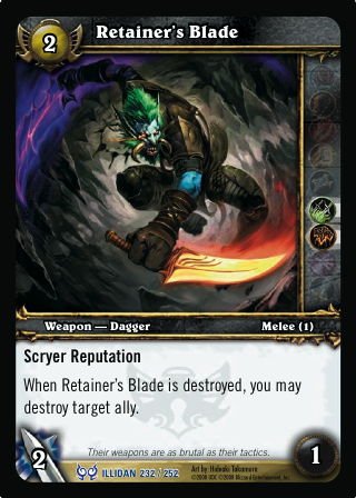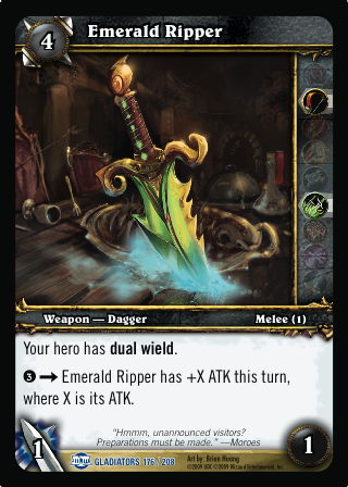모티프는 화산심장부의 라그나로스가 드랍하던 전멸의 비수. 와우TCG의 카드.