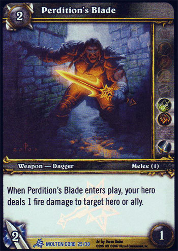 플레이버 텍스트 | 설퍼라스가 수리 중이면 라그나로스가 이걸 꺼내든다고 합니다. (Perdition's Blade is Ragnaros's back-up weapon while Sulfuras is in the shop.) |