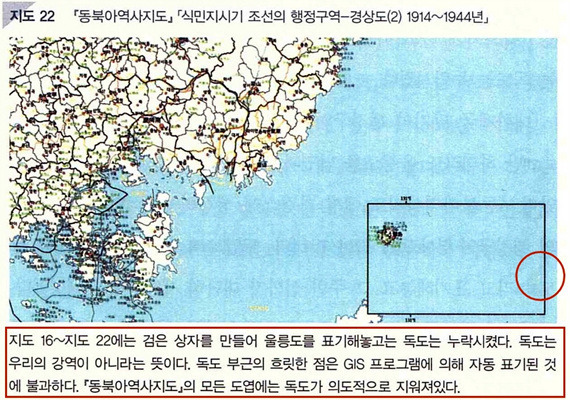 게다가 독도를 제외시켜서 일본 극우파의 침략사관에 동조하기까지 했다. 이것이 대한민국 국민 세금 47억여 원을 들여서 만든 『동북아역사지도』의 현주소다.……고구려와 한나라 국경선이 세로로 무 자르듯 뚝 잘려 있다. ‘실수’로 독도가 증발했다. 4세기를 나타낸 지도에 신라와 백제가 쏙 빠져 있다.