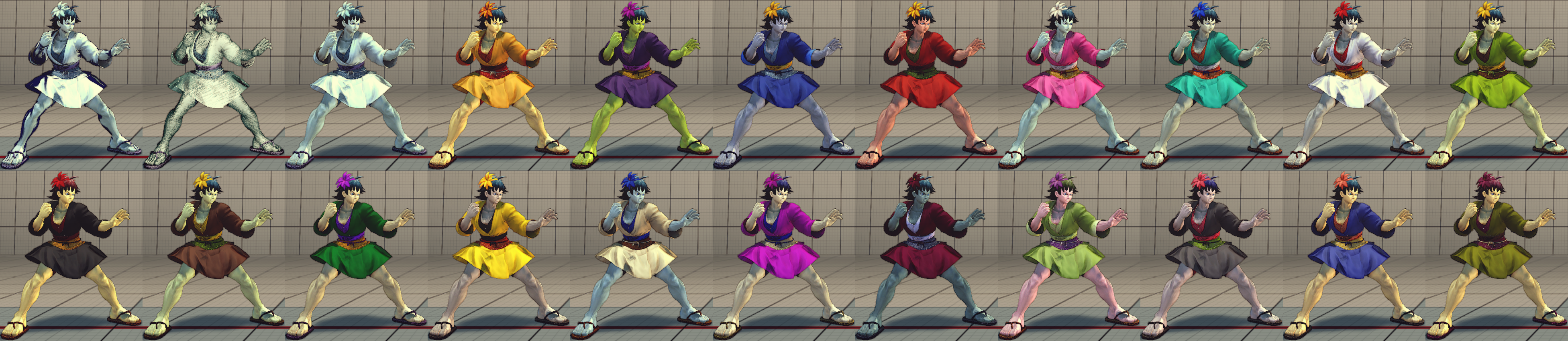 DLC 코스튬 1이 웬 목장에서 소똥 치우다 달려나온 시골 처녀 컨셉이었다면 한국 시간으로 2010년 10월 26일 DLC 코스튬 2로 추가된 신규 복장은 바야흐로 여고생다운 교복에 핫팬츠. 그러나 캐릭터 선택율은 여전히 높아지지 않은 듯. 여고생 다운 외모가 문제가 아니라 SSF 4: AE Ver. 2012에서도 크림슨 바이퍼, 등과 어깨를 나란히 할 정도로 운용이 미친 듯이 어려운데 반해 콤보 폭발력을 제외하면 그다지 강한 모습을 보여주지 못하는 캐릭터라는 것이 크다.