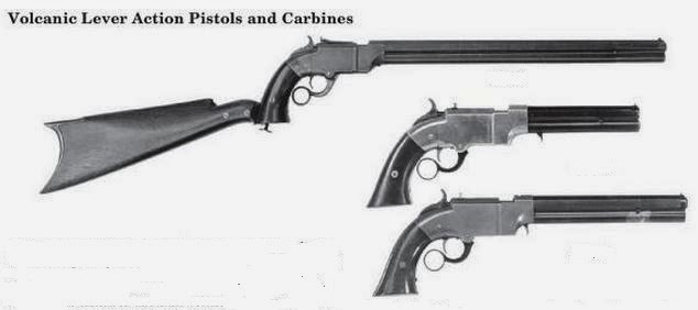볼캐닉 리피팅 암즈(Volcanic Repeating Arms)에서 제작한 세계 최초의 레버액션 총기.[19] 월터 헌트의 레버액션 소총을 개량해 출시한 권총으로, 기술 특허는 1854년에 제출되었다. 당대 리볼버의 장탄수가 대부분 6발이었지만 이놈은 관형탄창으로 10발이라는 상당한 양이 장전되었기에 리볼버를 대체할만한 총기로 기대를 사기도 했다. 설명서 영상