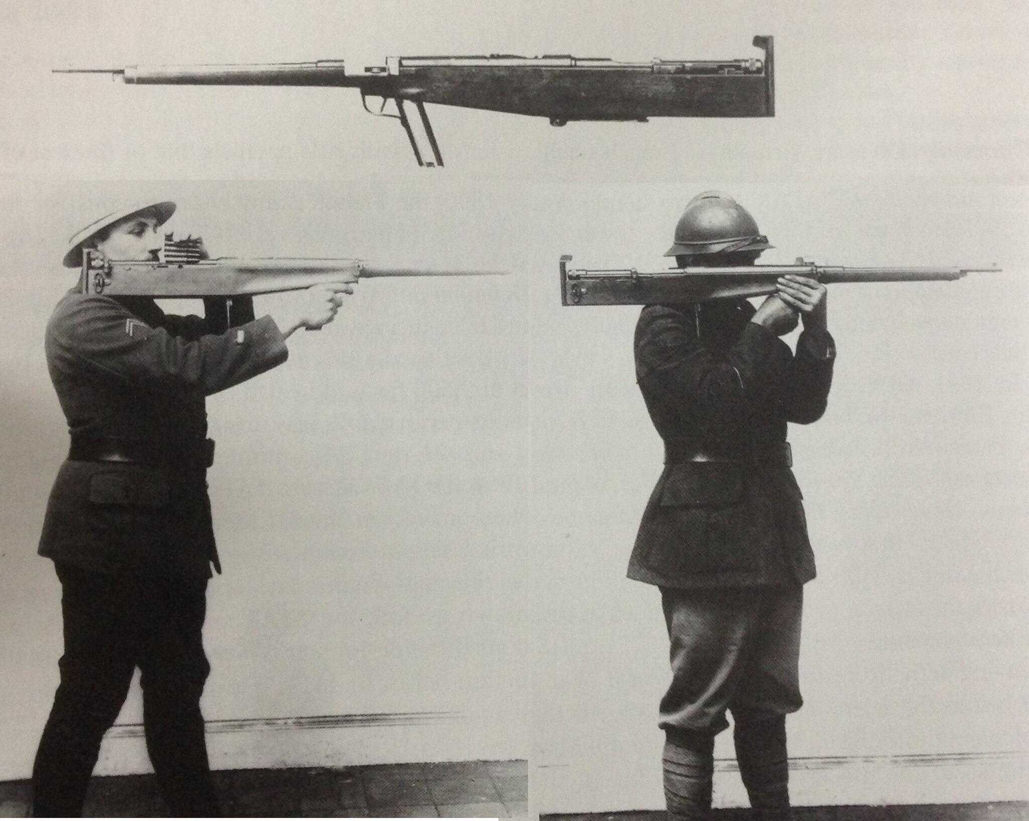 루이스 경기관총을 불펍으로 마개조한 기관총. 기존 총기를 마개조한 탓인지 원래 방아쇠, 방아쇠울, 권총손잡이가 다 보이고 Meunier Faucon처럼 바주카같은 대전차 로켓처럼 어깨 위로 견착해야 한다.