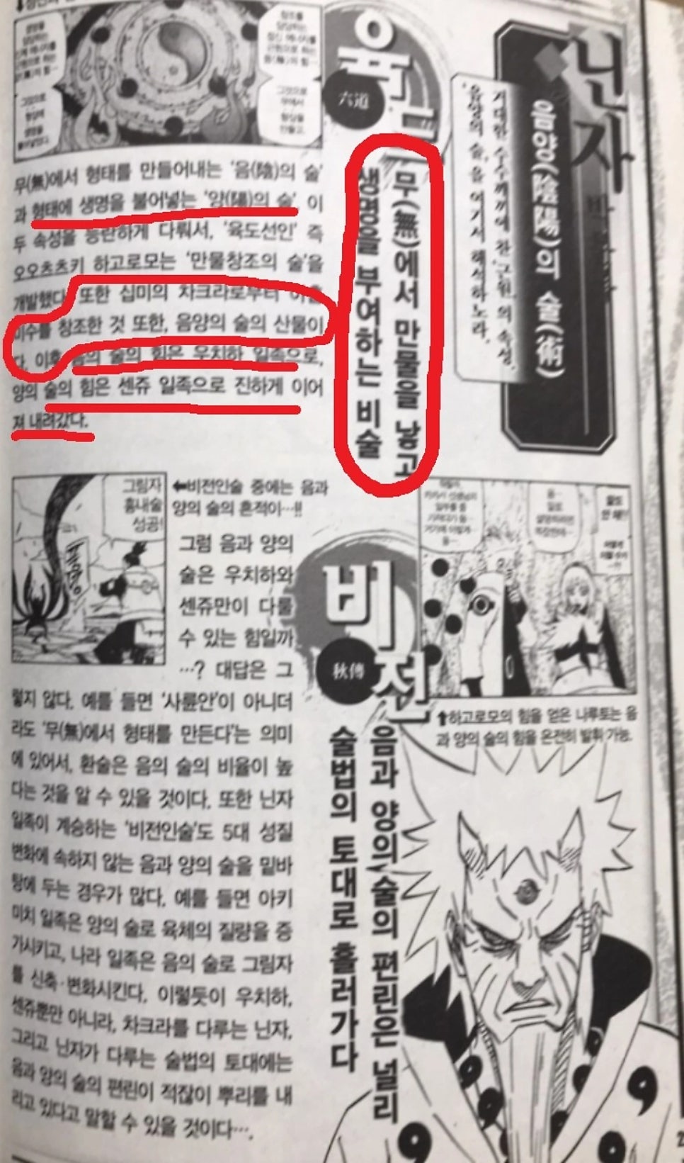 마다라가 하시라마의 살점을 뱉고 상처 부위에 이식한 뒤 한참이 지나서야 윤회안을 개안한 것도 엄밀히 따지면 윤회안은 이자나기랑 조건이 다르기 때문이다. 이자나기를 쓸 땐 단순히 우치하의 음의 힘과 센쥬의 양의 힘이 동시에 요구되는 거지만 윤회안은 인드라의 차크라와 아수라의 차크라를 하나로 융합해 하고로모랑 같은 차크라를 이끌어내야 개안되는 거다. 즉 하시라마의 살점을 물어뜯고 삼킨 시점에서 하시라마의 차크라는 체내에 들어왔지만 자신의 차크라와 융합된 건 아니기에 다시 뱉어서 이식해 오랜 세월이 흘러 완전히 융합되고 하고로모와 같은 차크라가 되었다고 볼 수 있다.