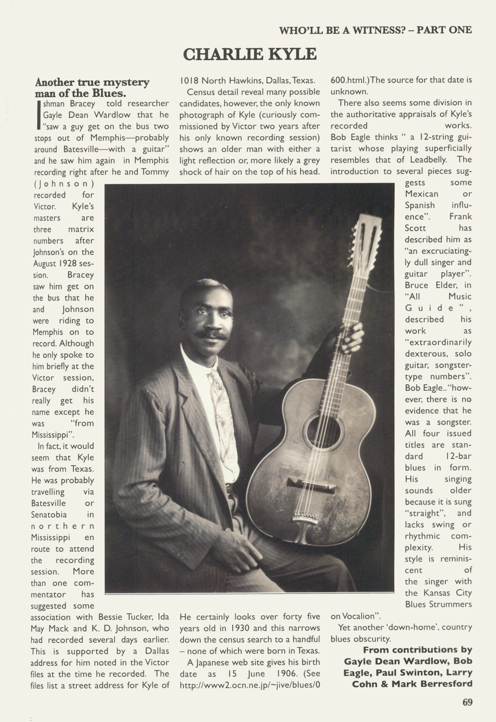 1881년 11월 6일, 텍사스주 샌 마르코스에서 태어났다.[A]1928년 9월 1일, 멤피스의 피바디 호텔에서 6곡 (2곡 미발행) 을 녹음했다. 곡들은 빅터 레코드사에서 발매했으며, 광고와 함께 발매된 마지막 2곡은 642개의 사본이 팔렸다고 한다.[A] 세션 도중에 인디애나주 베이츠빌, 미시시피주 북부를 방문했을 거라 추정된다. #